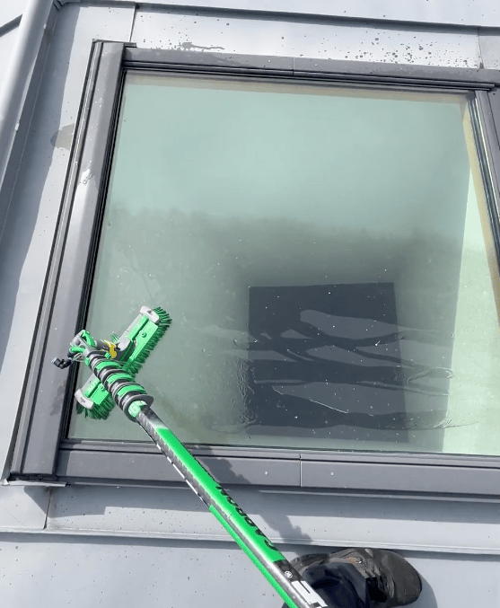 Oui. Grâce à nos perches spécifiques, nous pouvons nettoyer l’extérieur d’un Velux sans monter sur votre toiture, ce qui élimine tout danger de chute et réduit le coût de l’intervention. Idéal pour les maisons à étages ou toits pentus.