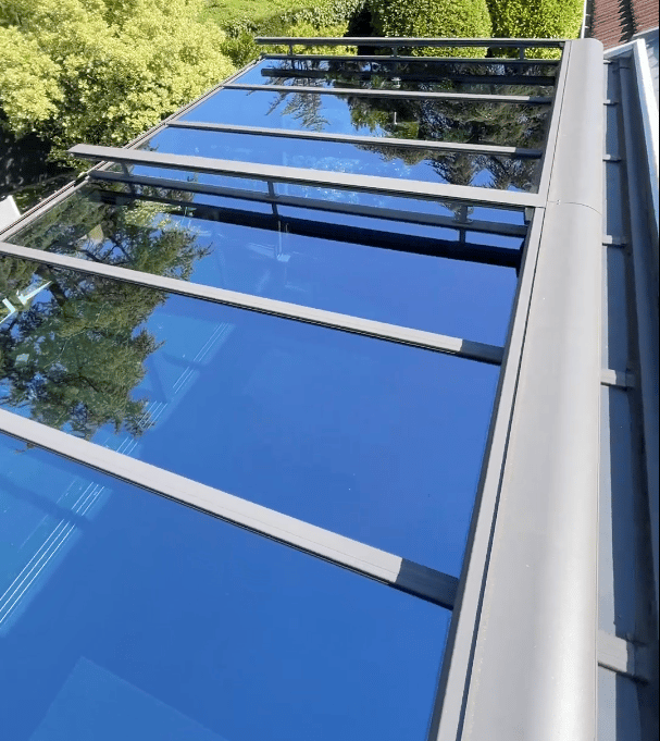 Un nettoyage professionnel permet d’éliminer efficacement saletés, pollution, mousses et traces difficiles. Cela garantit une luminosité optimale, prolonge la durée de vie de votre véranda et évite les risques liés au nettoyage en hauteur ou aux produits inadaptés.